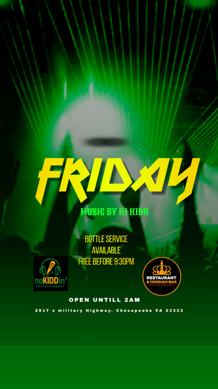 The weekend starts here β and we turn it all the way up! Join us every Friday for the ultimate late-night vibe featuring premium drinks, smooth hookah, and the hottest beats by DJ Kidd.